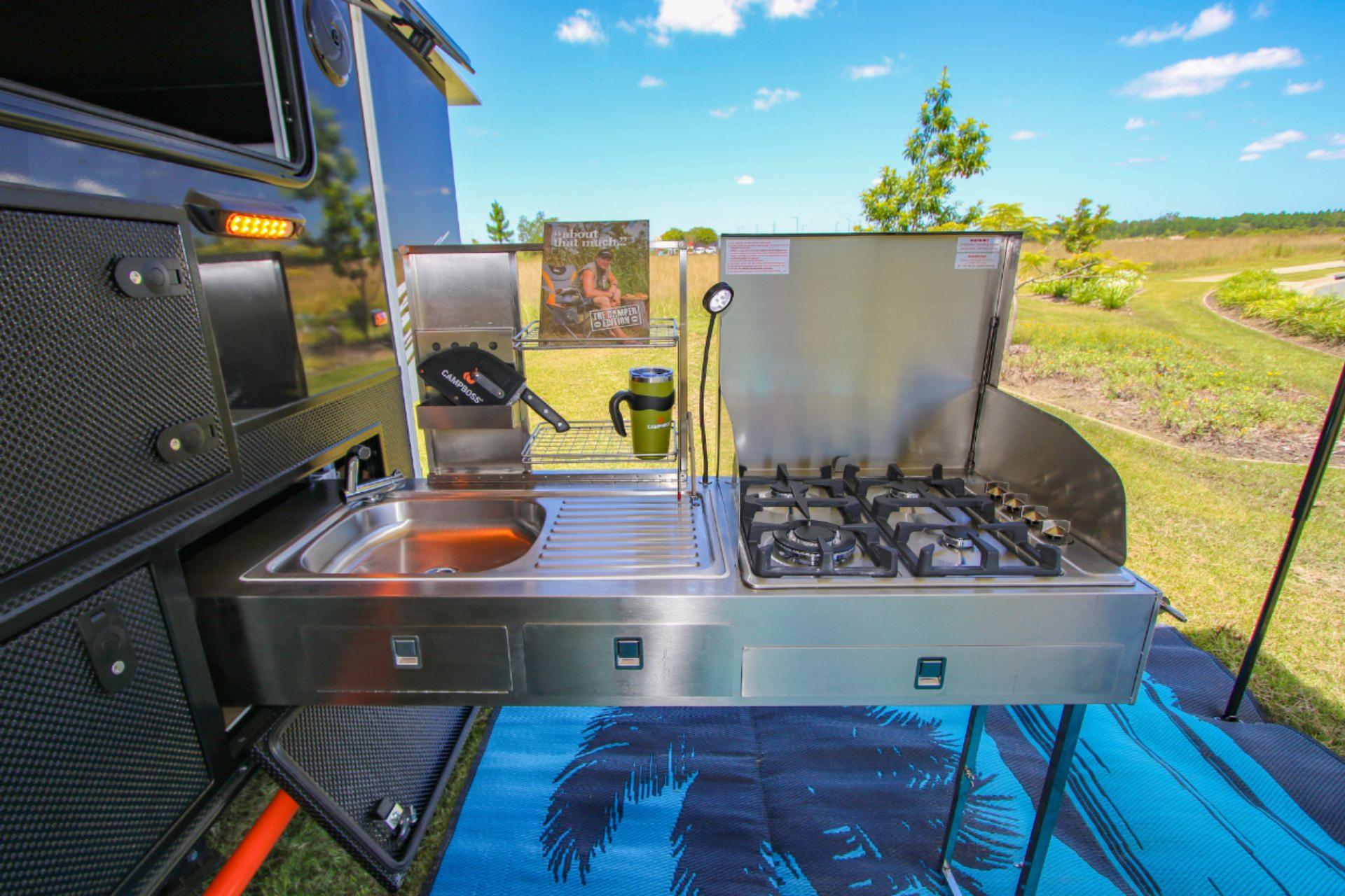 Your ultimate off-road adventure starts with a 15-foot profile that expands upwards and outwards to reveal a spacious interior that can sleep up to four people.