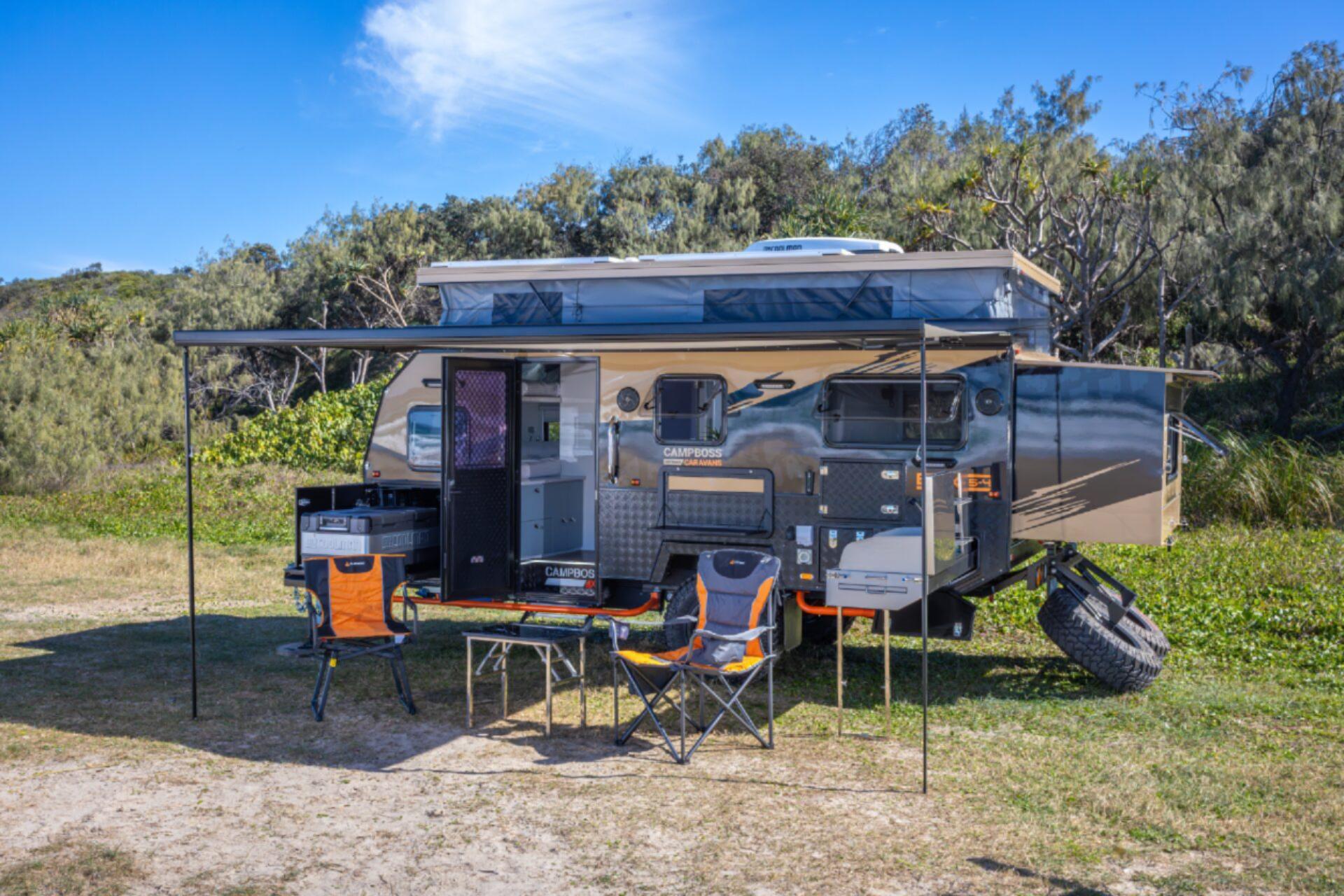 In true CampBoss style the BTX15-4 is designed to go adventuring with mud terrain off-road tyres, heavy duty independent suspension with coils and dual shock absorbers, built-in rock sliders, and a break away towing system.